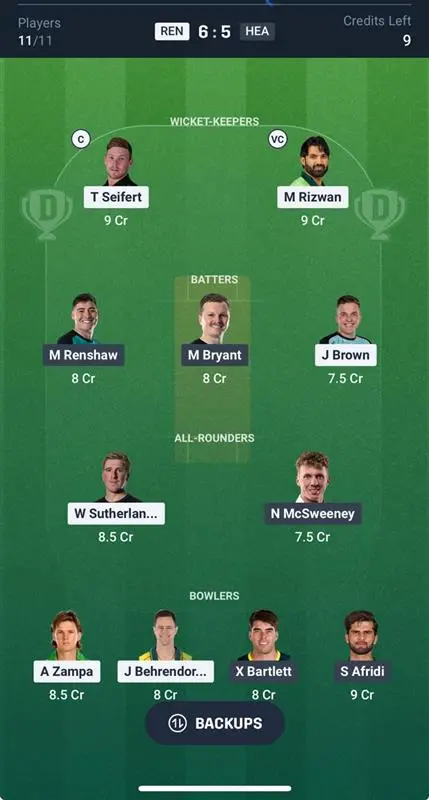 REN vs HEA Dream11 Team Combination Tips