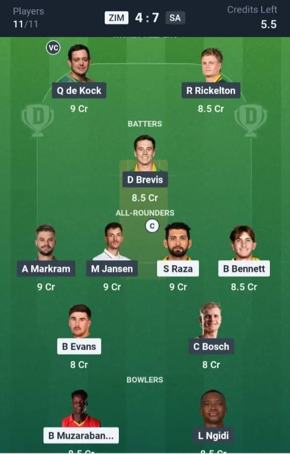 ZIM vs SA Dream11 Prediction – Who Will Win?